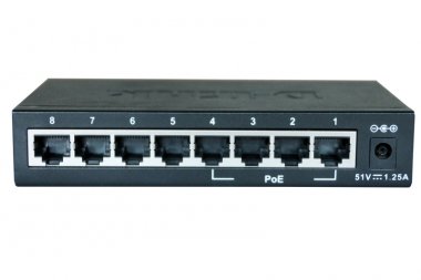 4 порта коммутатора DES-1008P поддерживают стандарт IEEE 802.3af PoE. Каждый порт PoE подает питание мощностью до 15,4 Вт при общем бюджете коммутатора 58 Вт, что позволяет пользователям подключать к DES-1008P устройства, совместимые со стандартом 802.3af. Это позволяет размещать оборудование в труднодоступных местах вне зависимости от расположения электрических розеток и минимизировать прокладку кабеля. Если устройство не поддерживает PoE, используйте адаптер DWL-P50, с помощью которого можно преобразовать любой Ethernet-порт в порт с поддержкой PoE.