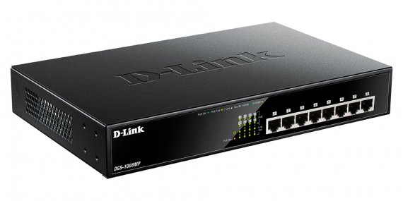 D-Link DGS-1008MP/B Неуправляемый PoE-коммутатор, 8x1000Base-T