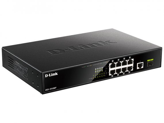 D-Link DGS-1010MP Неуправляемый коммутатор с 9 портами 10/100/1000Base-T, 1 портом 1000Base-X SFP
