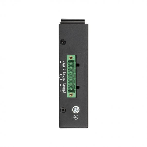 Металлический корпус (стандарт IP40) и широкий диапазон рабочих температур позволяют использовать DIS-100G-10S в неблагоприятных условиях окружающей среды. Высокий уровень электромагнитной совместимости обеспечивает устойчивость коммутатора к воздействию сильных электромагнитных помех, а пассивная система охлаждения – бесшумную работу коммутатора. Данное устройство может быть установлено на DIN-рейку с помощью соответствующего кронштейна. DIS-100G-10S оснащен клеммным блоком для подключения до двух независимых источников питания DC1 и предоставляет пользователю возможность обеспечить бесперебойное питание в случае сбоя основного источника.