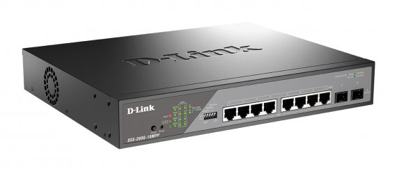 D-Link DSS-200G-10MPP Настраиваемый L2 коммутатор с 8 портами 10/100/1000Base-T и 2 портами 1000Base-X SFP