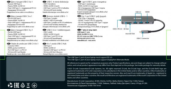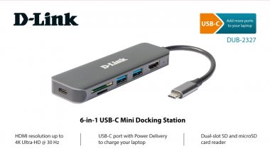 D-Link DUB-2327 Док-станция с разъемом USB Type-C, 2 портами USB 3.0, 1 портом USB Type-C/PD 3.0