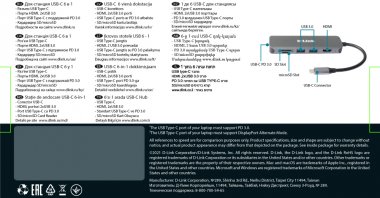 Док-станция с разъемом USB Type-C, 2 портами USB 3.0, 1 портом USB Type-C/PD 3.0, 1 портом HDMI и слотами для карт SD и microSD USB-C Docking Station, 2xUSB 3.0 + USB-C/PD3.0 + HDMI, SD/microSD Card Reader