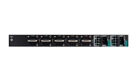 Коммутатор DXS-3610-54S обеспечивает высокопроизводительную 10-гигабитную передачу данных с коммутационной матрицей до 2,16 Тбит/с. Коммутатор оснащен источниками питания с возможностью «горячей» замены и вентиляторами, что обеспечивает высокий уровень надежности и отказоустойчивости. Модульная схема питания позволяет выбрать сеть с постоянным или переменным током в зависимости от места установки. При установке двух источников питания они распределят нагрузку, а также осуществляют резервирование питания по схеме 1+1. DXS-3610-54S также включает модульную схему вентиляторов. Пять вентиляторов могут дублировать друг друга, обеспечивая резервирование системы охлаждения. Если один из вентиляторов выйдет из строя или температура повысится, скорость вращения остальных вентиляторов увеличивается автоматически.